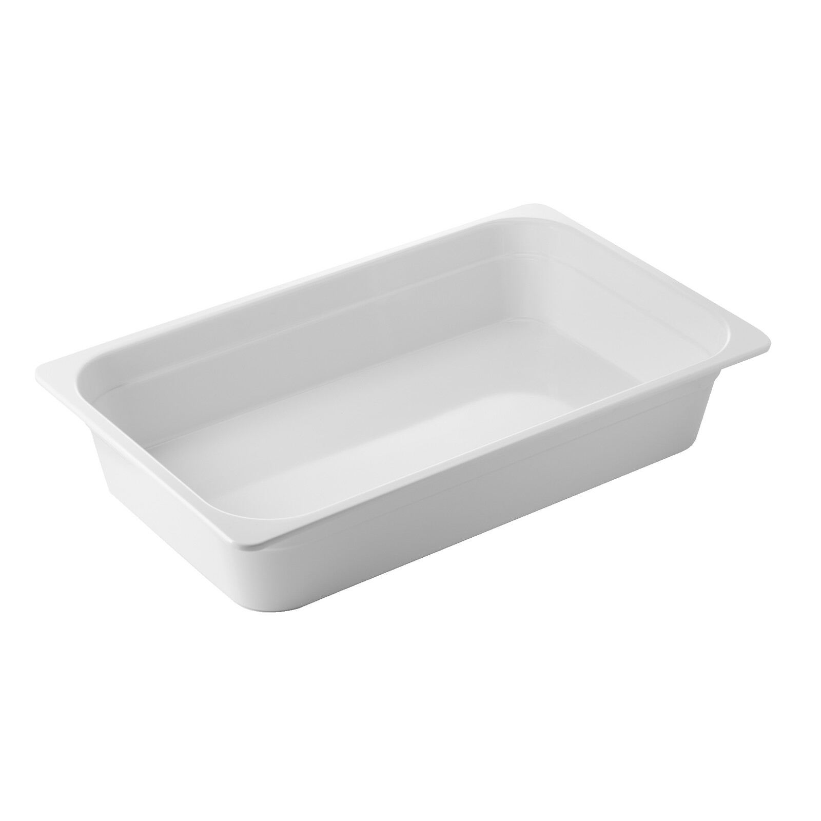 Täuschend nah an Porzellan - jedoch aus Melamin! Kostensparend durch extreme Bruchsicherheit und durch das geringe Gewicht angenehm zu tragen. Die Behälter sind im klassischen Stil und passen somit zu fast jedem Dekor, Menü-Trend oder Buffetlandschaft. Tiefkühlfest. Nicht für Backofen und Mikrowelle geeignet.