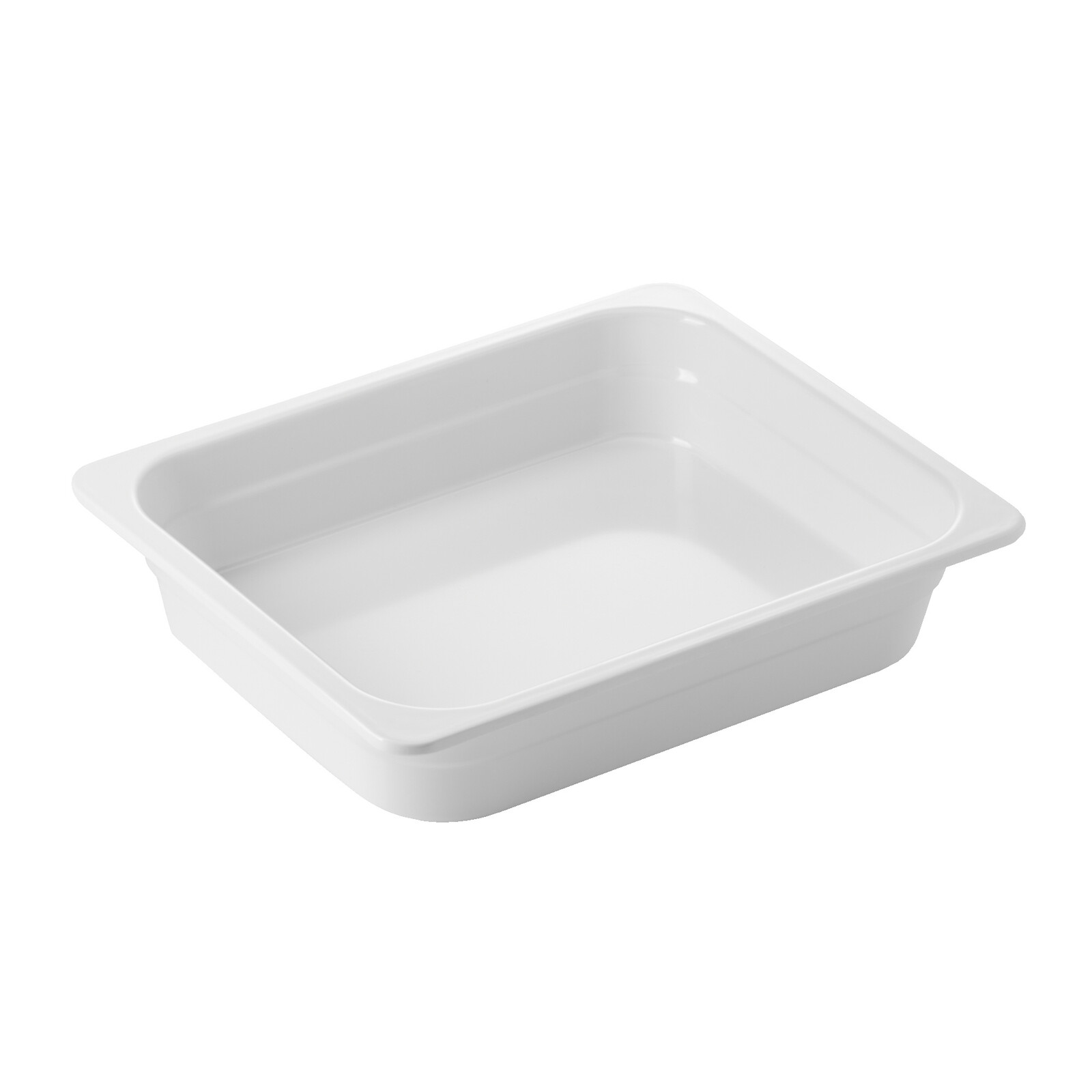Täuschend nah an Porzellan - jedoch aus Melamin! Kostensparend durch extreme Bruchsicherheit und durch das geringe Gewicht angenehm zu tragen. Die Behälter sind im klassischen Stil und passen somit zu fast jedem Dekor, Menü-Trend oder Buffetlandschaft. Tiefkühlfest. Nicht für Backofen und Mikrowelle geeignet.