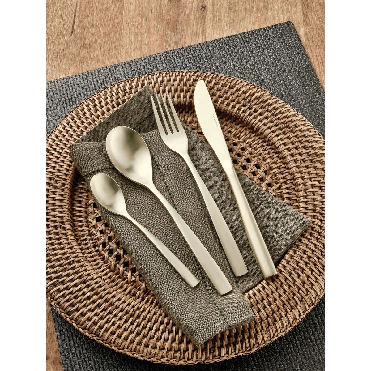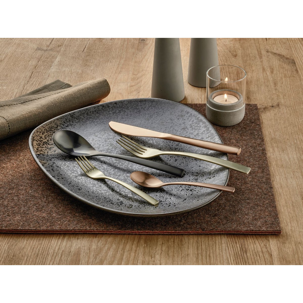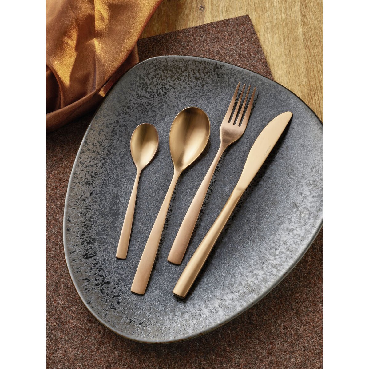Chromstahl 18/0, rostfrei, mattes Design, 3,0 mm stark, PVD beschichtet, Die Farben schwarz, kupfer u. champagner sind perfekt miteinander kombinierbar. Bitte Pflegehinweis beachten. Dieser befindet sich auf der Verpackung.