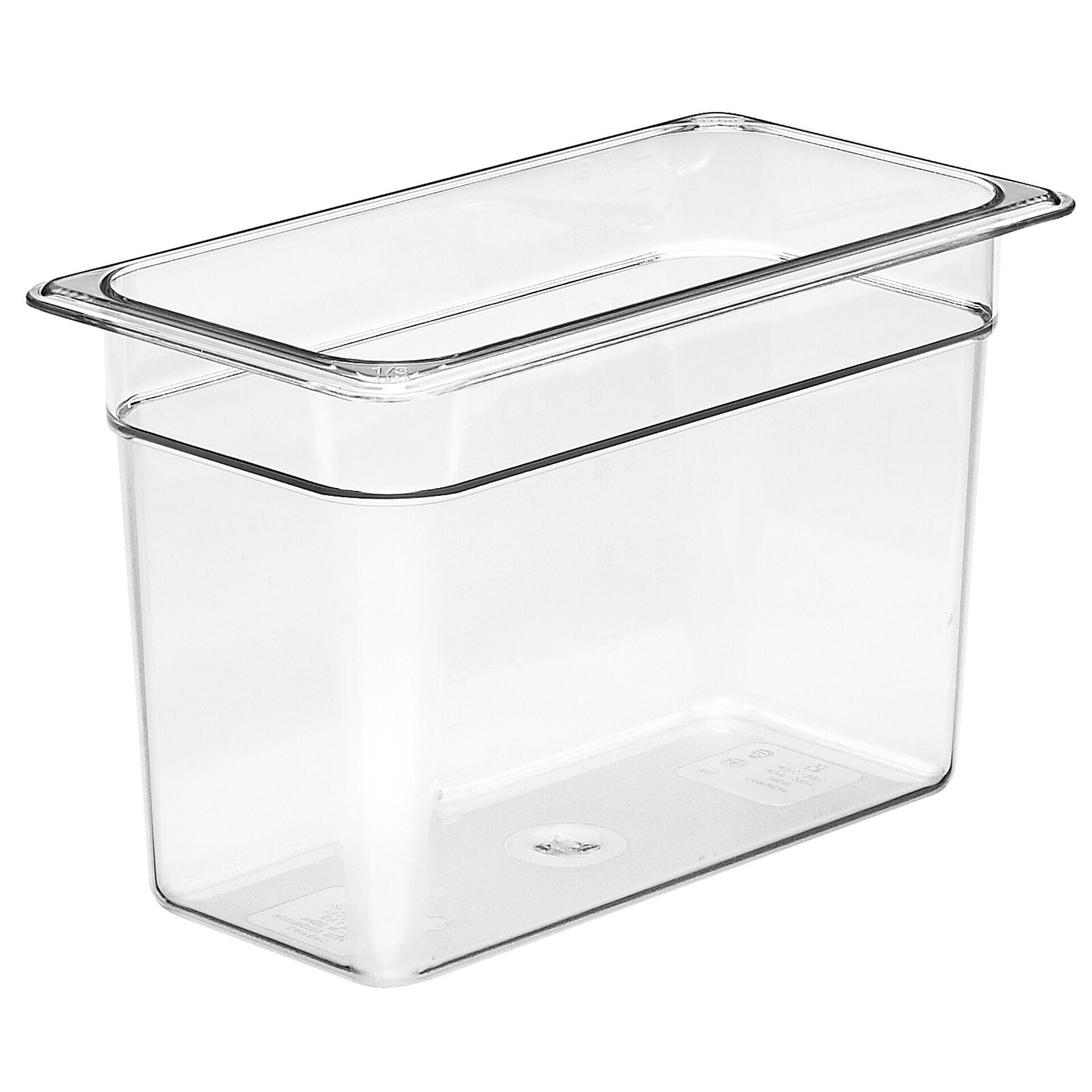 BPA-frei, einsetzbar von -40 bis +71°C., transparent, stapelbar, bruchsicher, mit Skalierung, spülmaschinengeeignet, nicht geeignet für Mikrowelle. Passende Deckel bitte separat mitbestellen.