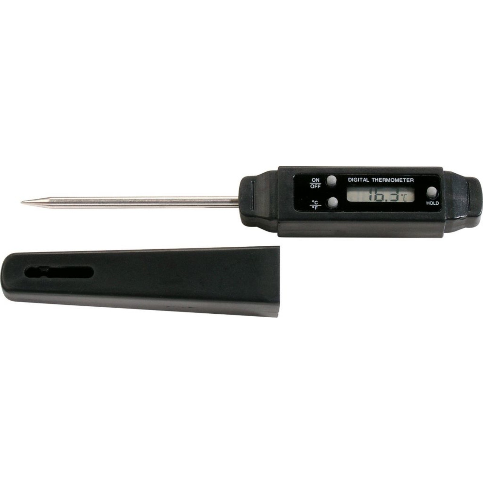 Mit Haltefunktion. Schaltet sich nach 15 Min. automatisch aus. Umschaltbar auf °F. Messbereich: -50°C bis +125°C. Ideal für Fleischverarbeitung, Großküchen, Kantinen, Kühlhäuser und Gastronomie. Inkl. Schutzhülle mit Clip. Einstechtiefe: ca. 7 cm.