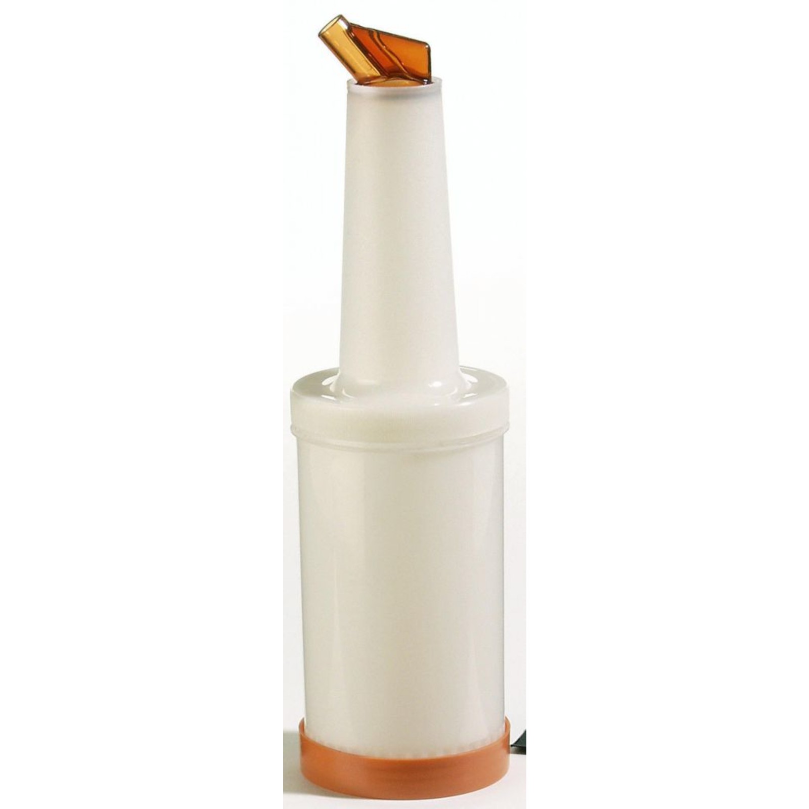 4-tlg. Behälter + Flaschenhals + Schraubdeckel + Ausgießer Ø 11mm mit Luftzufuhr für gezieltes Ausgießen, zum Dosieren und Aufbewahren. PP. Inhalt: ca. 1 Liter.