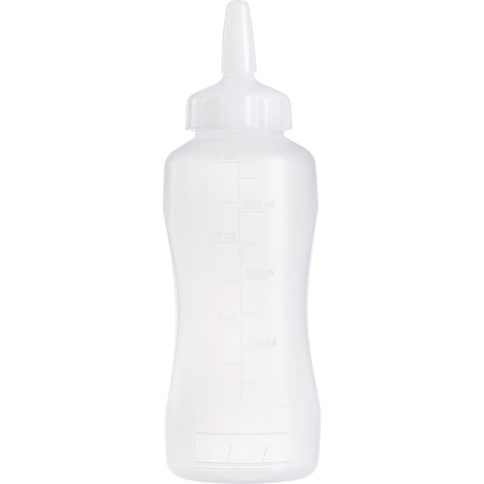 HDPE (Hart-Polyethylen, transparent). Spülmaschinengeeignet.