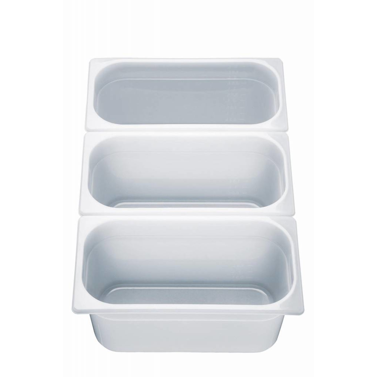 Polypropylen, einsetzbar von -40°C bis +70°C, spülmaschinen- und mikrowellengeeignet.