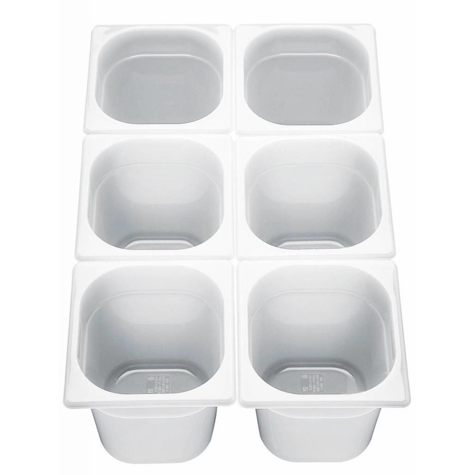 Polypropylen, einsetzbar von -40°C bis +70°C, spülmaschinen- und mikrowellengeeignet.