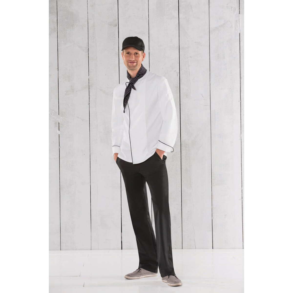 - 152658 | Kochjacke mit schwarzer Paspel, Herren langarm Kochjacke, weiß