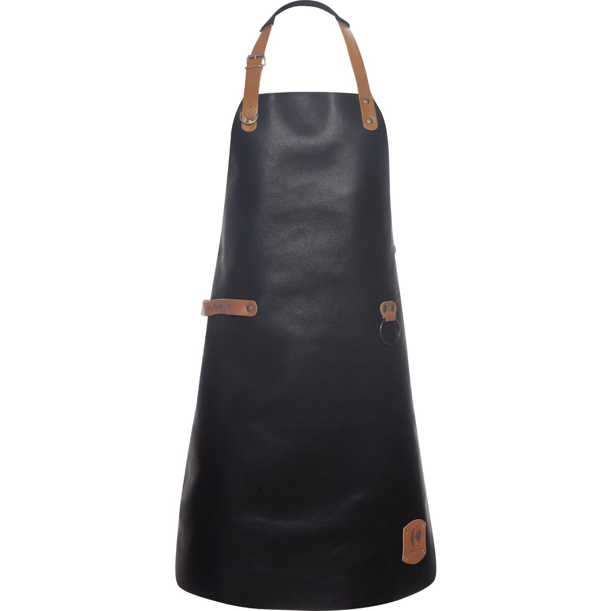 Stylische Lederschürze aus angenehm leichtem und schmiegsamen Rindsleder. 100 % handgearbeitetes Naturprodukt. Farbig abgesetzte Lederapplikationen und bronzierte Metallnieten. Nicht bügeln, nicht waschmaschinengeeignet.