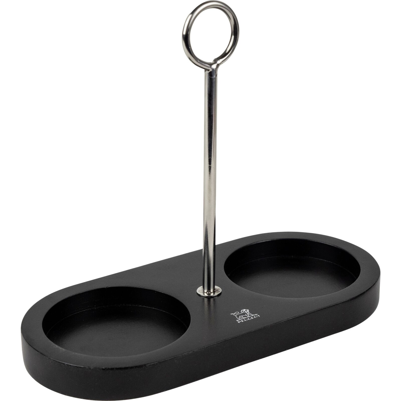 Die besondere Gewürzmühlen-Menage von Peugeot eignet sich perfekt für Ihr Lieblings-Salz- und Pfeffermühlenset. Dank der praktischen Menage können Sie Ihre Mühlen schnell und sicher transportieren. Ob auf dem Esstisch oder neben dem Herd, ist die Menage ein Blickfang dank des hochwertigen Bambusholzes in edler, schwarzer Lackierung. Hinterlassen Sie keine Gewürzrückstände mehr auf ihrem Tisch mit der neuen Menage für Salz- und Pfeffermühlen von Peugeot! Passend für alle Mühlen mit einer Höhe von max. 18cm und einen Ø von max. 6,5cm.