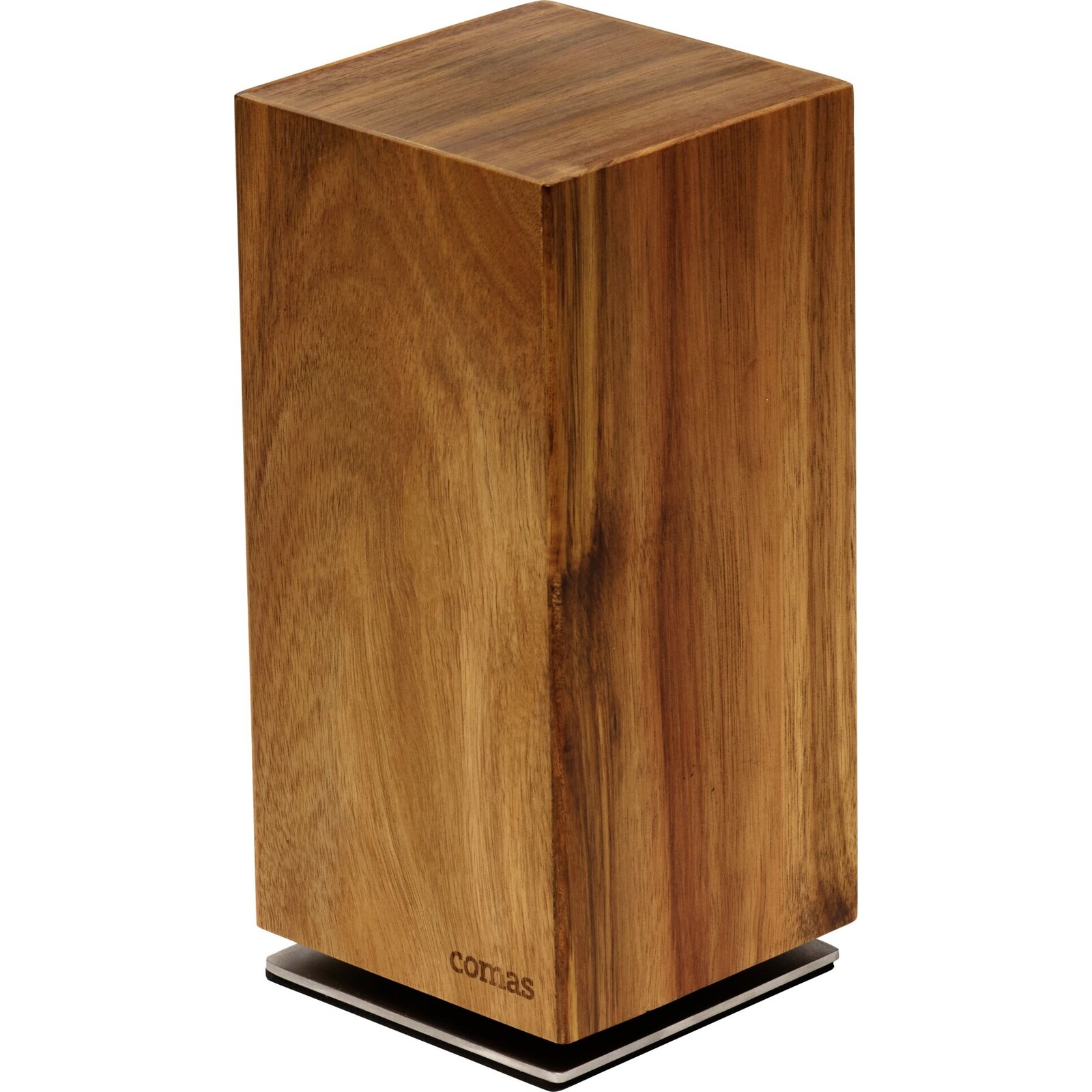 Akazienholz. Drehbarer Tischmagnet für Messer, Edelstahlfuß mit rutschfester Unterlage. 360° drehbar.