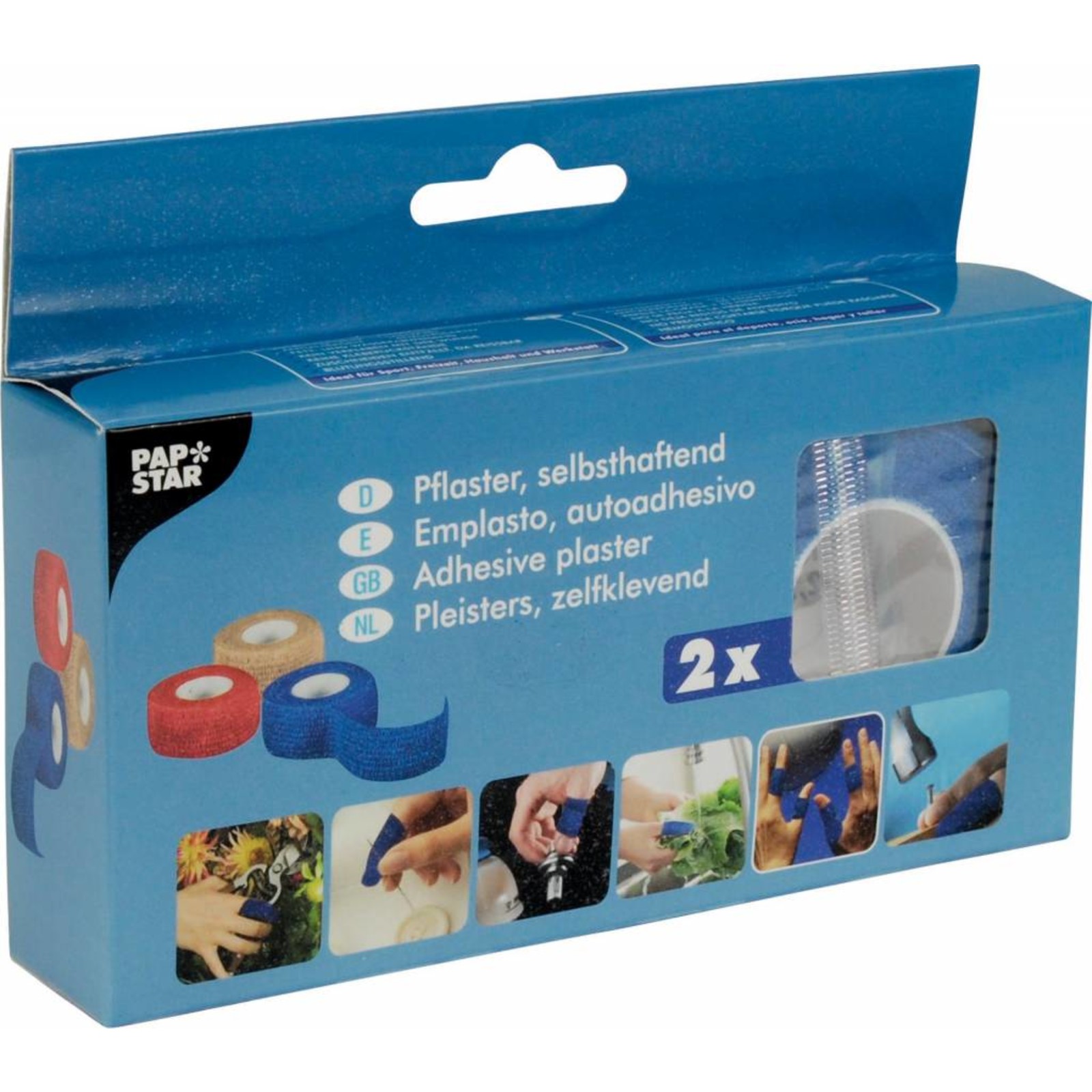 Selbstklebendes (kohäsives) Pflaster. Polyester, blau, LxB: 5m 2,5cm. Nur auf sich selbst haftend, kein Verkleben der Haut, Haare oder Wunden. Hautverträglich, auch bei Pflasterallergie anwendbar. Hält auch sicher bei Kontakt mit Feuchtigkeit. Ideal für den Einsatz nach HACCP. Im 2er Pack.
