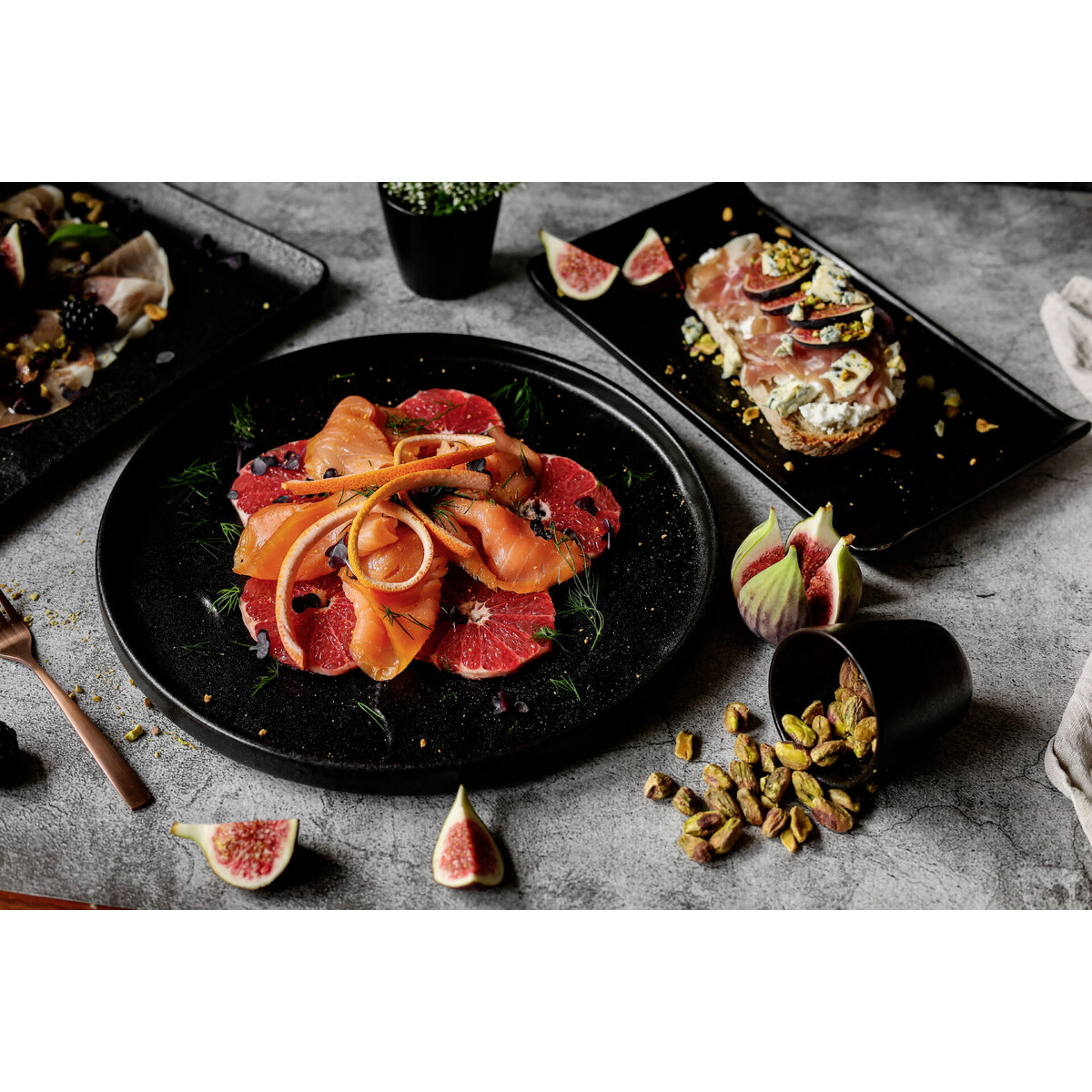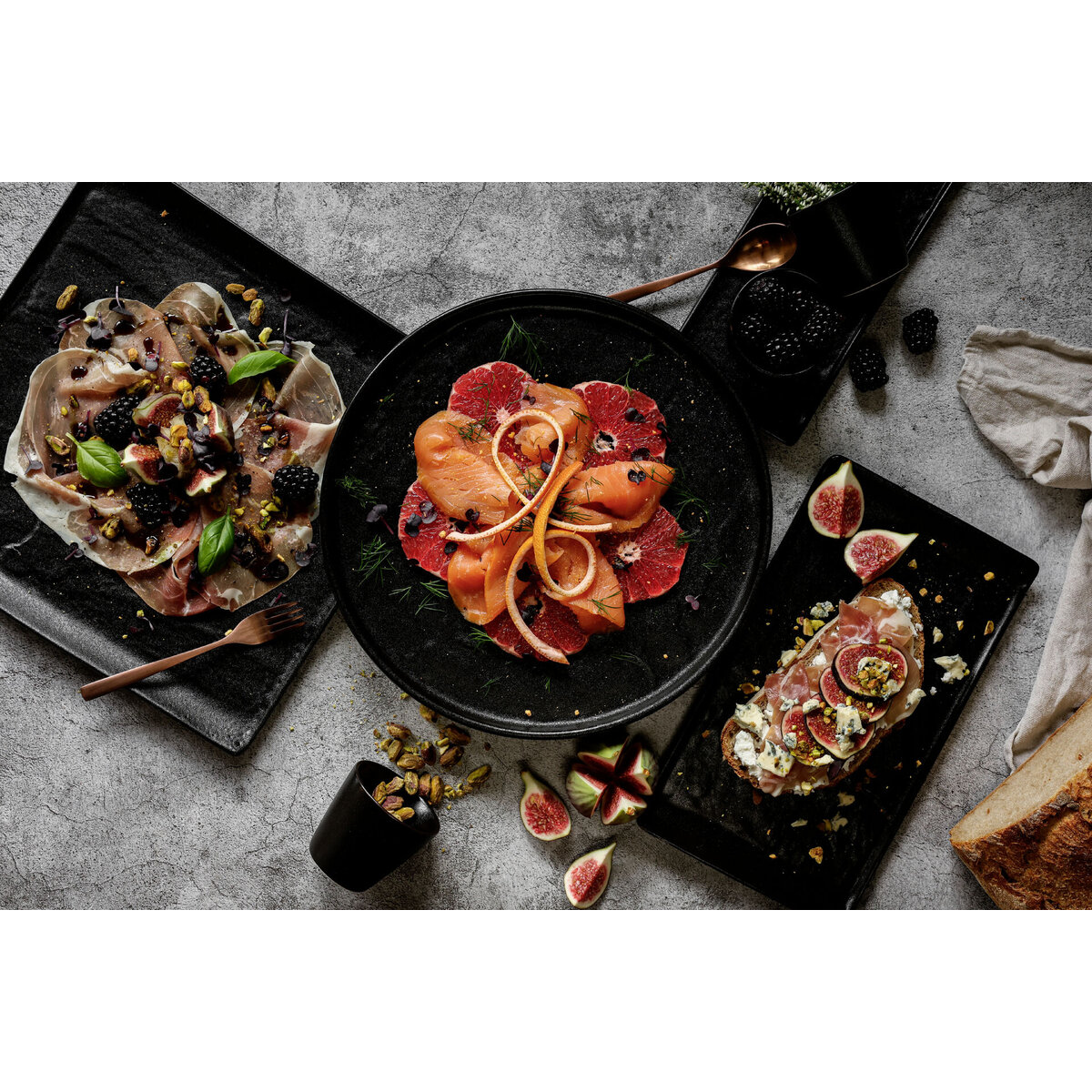 Porzellangeschirr im Schieferdesign. Unsere Porzellanserie Schieferlook besticht mit eleganter Schieferstruktur und einzigartigem Design. Die Kollektion umfasst vielseitige Formen – von flachen Tellern bis zu Platten mit Vertiefungen – und kombiniert modernes Aussehen mit langlebiger Qualität. Jedes Teil ein Unikat bedingt durch unterschiedlichen Strukturverlauf. Mischsortierung. Spülmaschinengeeignet.