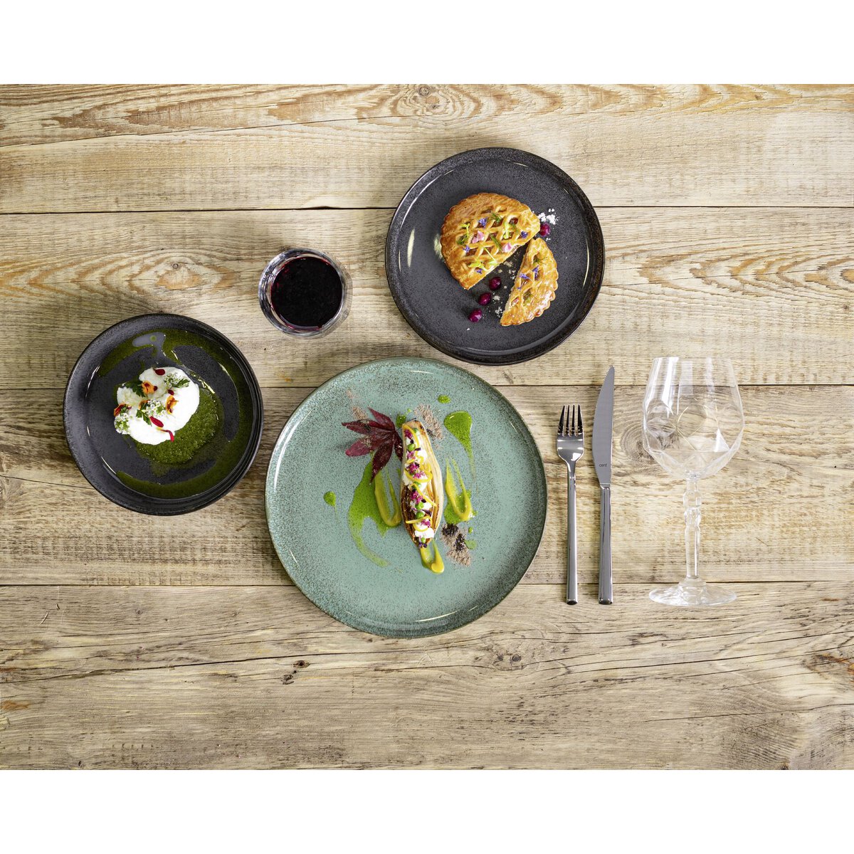 Robustes Porzellan in gesprenkelten Grüntönen, innen mit glänzender Glasur, außen edles Mattschwarz. Bedingt durch die Produktionsart ergeben sich äußerst geringe Farbschwankungen. Durch die moderne Form mit allen anderen vier Farbvarianten optimal kombinierbar. Spülmaschinengeeignet. Mischsortierung.