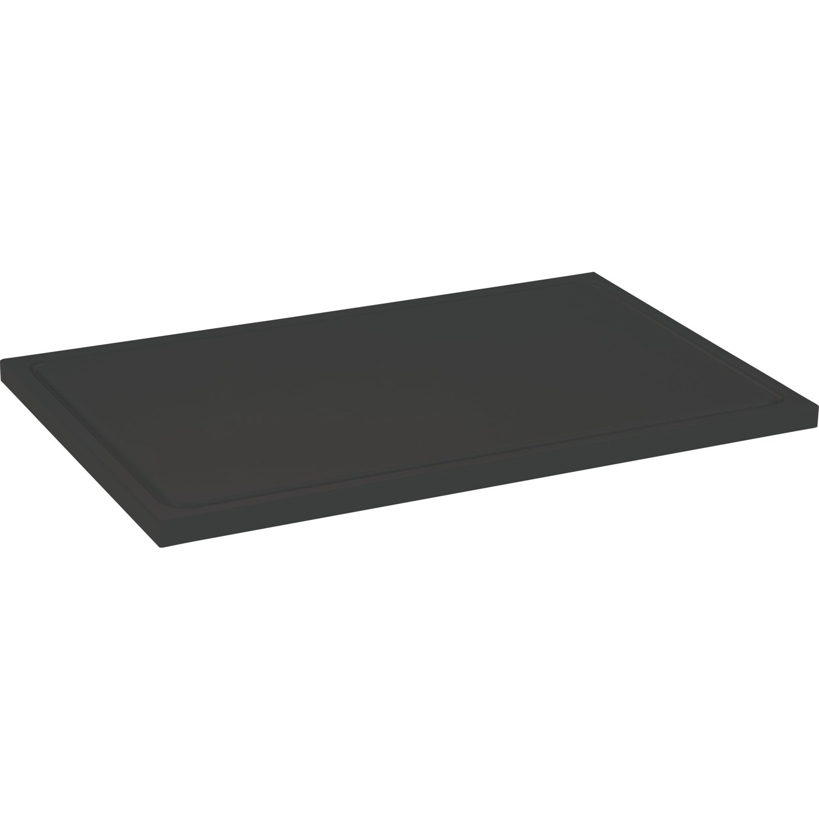 PE 500, mit Saftrille und Antirutsch-Füßchen. Bis 80°C temperaturbeständig. Schneidbretter dürfen beim Spülvorgang nicht geklemmt werden. Keine heißen Gefäße aufstellen, kann zum Verziehen der Platten führen.
