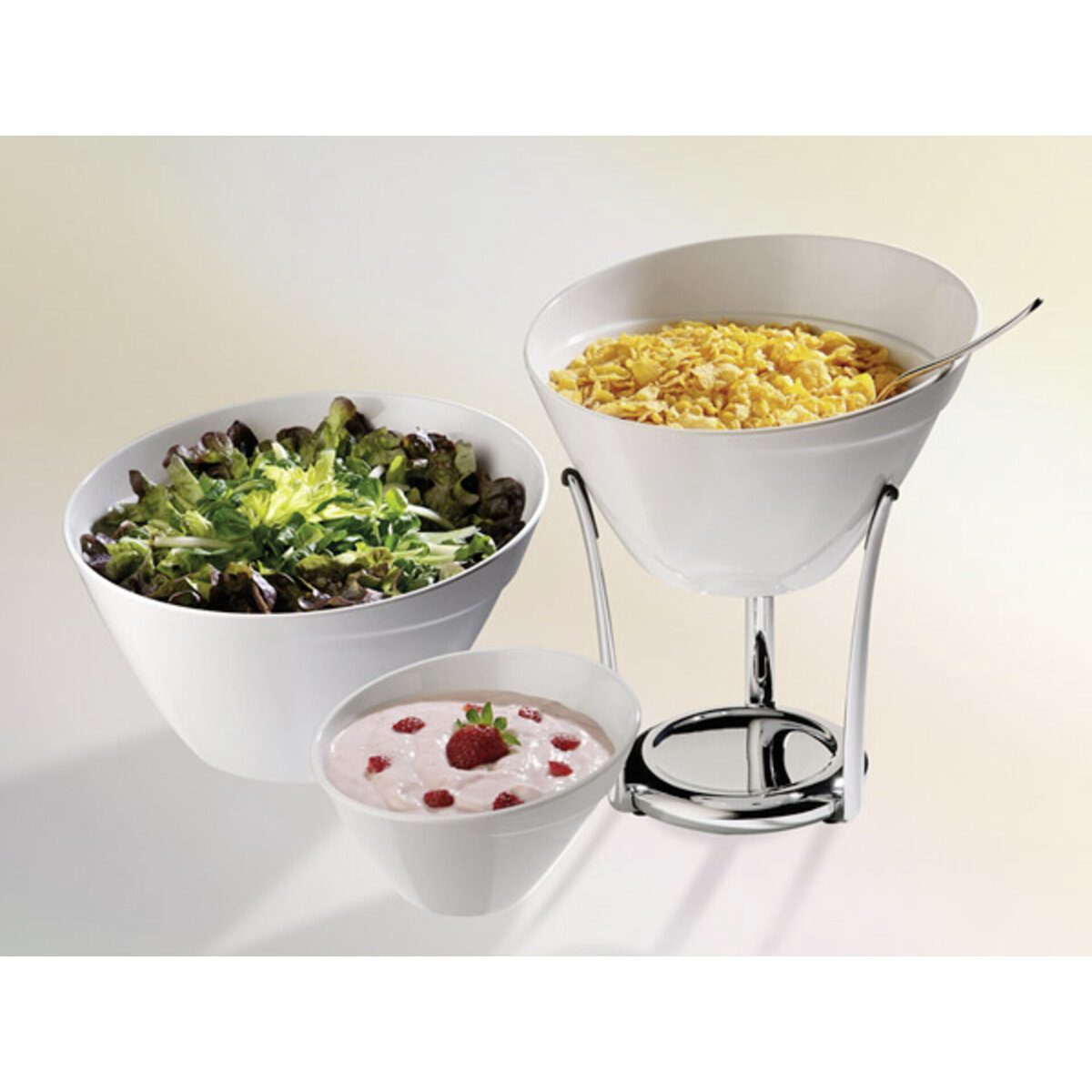 Weiß. Stapelbare Schüssel aus Melamin, mit Antirutsch-Füßchen, ideal für Buffetständer King (Art.-Nr. 101500+100501) temperaturbeständig -30°C bis +70°C, lebensmittelecht, hygienisch, geruchs- und geschmacksneutral, extrem bruchsicher. Spülmaschinengeeignet!
