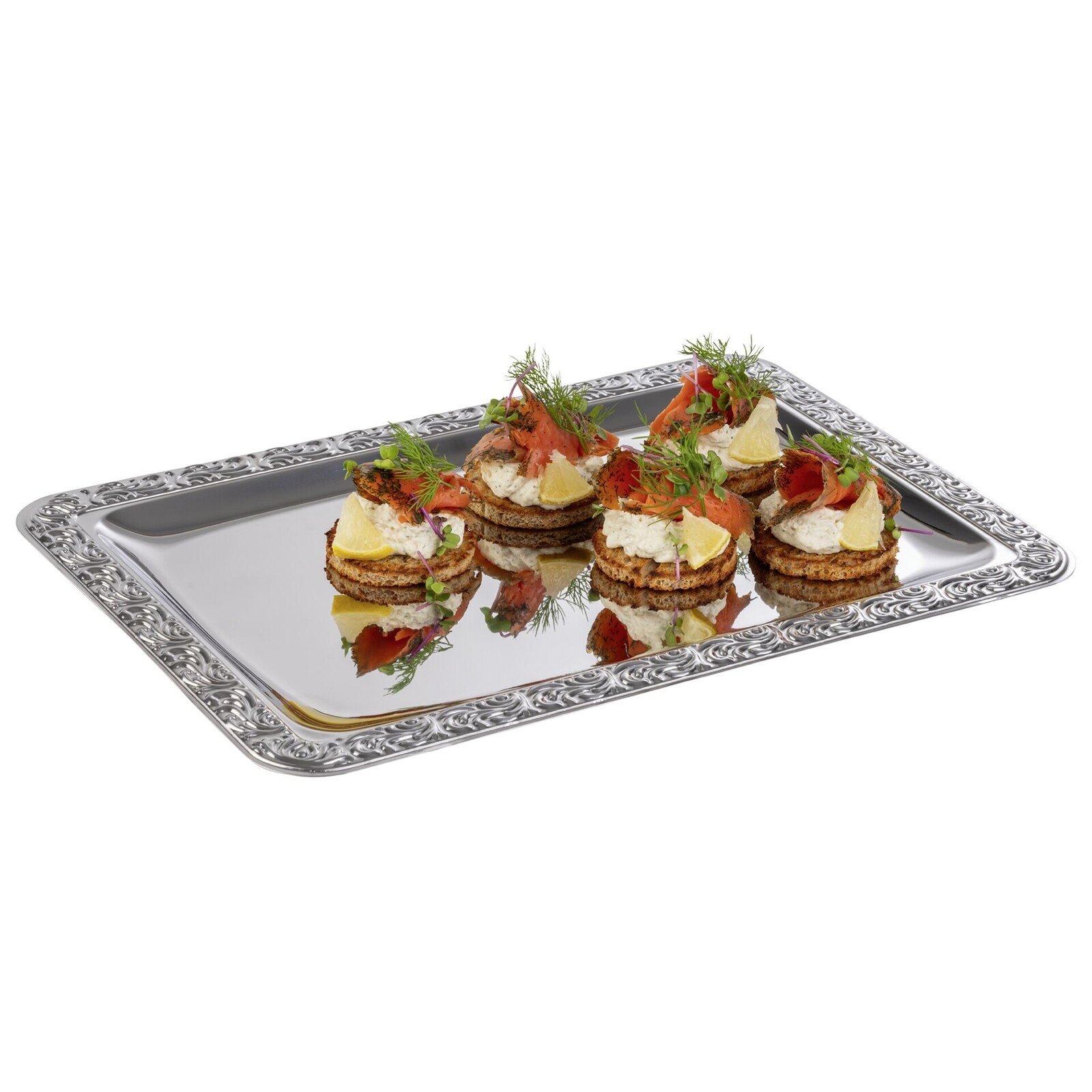 Serviertablett mit Barockrand Edelstahl 35x24cm