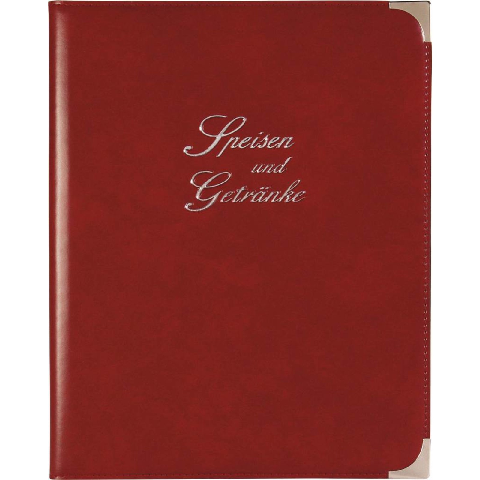 Speisekarte, Metallecken silber A5, weinrot