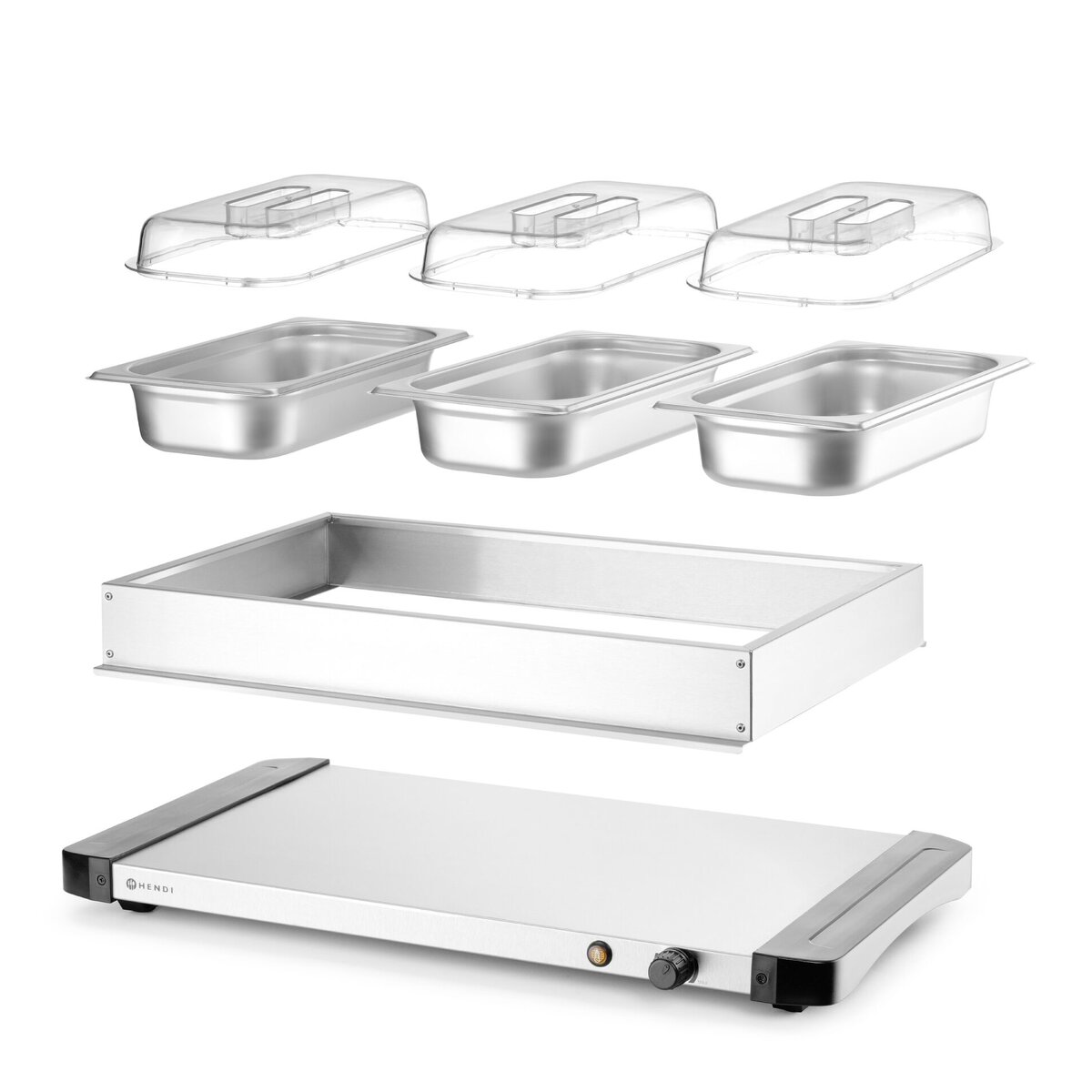 Der Speisenwärmer hat einen einstellbaren Temperaturbereich von 40 °C bis 75 °C und enthält 3 GN 1/3 Behälter mit passenden Deckeln, um Wärme und Frische zu bewahren. Darüber hinaus kann er als Buffetwärmer oder Heizplatte verwendet werden und bietet vielseitige Funktionalität. Lieferumfang: Platte, Rahmen, drei GN 1/3 (Edelstahl) inkl. passenden Deckeln (Polypropylen). Übertrifft Standardmodelle und bietet hohe Leistung für schnellere und gleichmäßigere Wärmespeicherung.