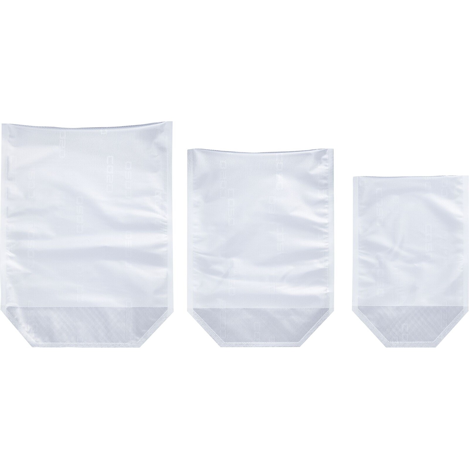 Material: PE,PA. Set bestehend aus: 12 Standbeutel 20x30cm, 8 Standbeutel 25x35cm u. 5 Standbeutel 30x40cm, Tiefe jeweils 14 cm (bei aufgeklappten Boden), ideal für das Vakuumieren von Flüssigkeiten und voluminösen Lebensmitteln, besonders geeignet für Vakuumiergerät 17471 (Liquid Function), Lebensmittel bleiben bis zu 8 x länger frisch. Mikrowellengeeignet (bis 70°C, Beutel dabei leicht öffnen), SousVide-geeignet: kochfest bis 100°C für max. 8 Std., inkl. Stickern und Caso Food Manager App, spülmaschinengeeignet und wiederverwendbar. BPA-Frei. Geeignet auch für Art. 12010, 17415, 17473 u. 17961.