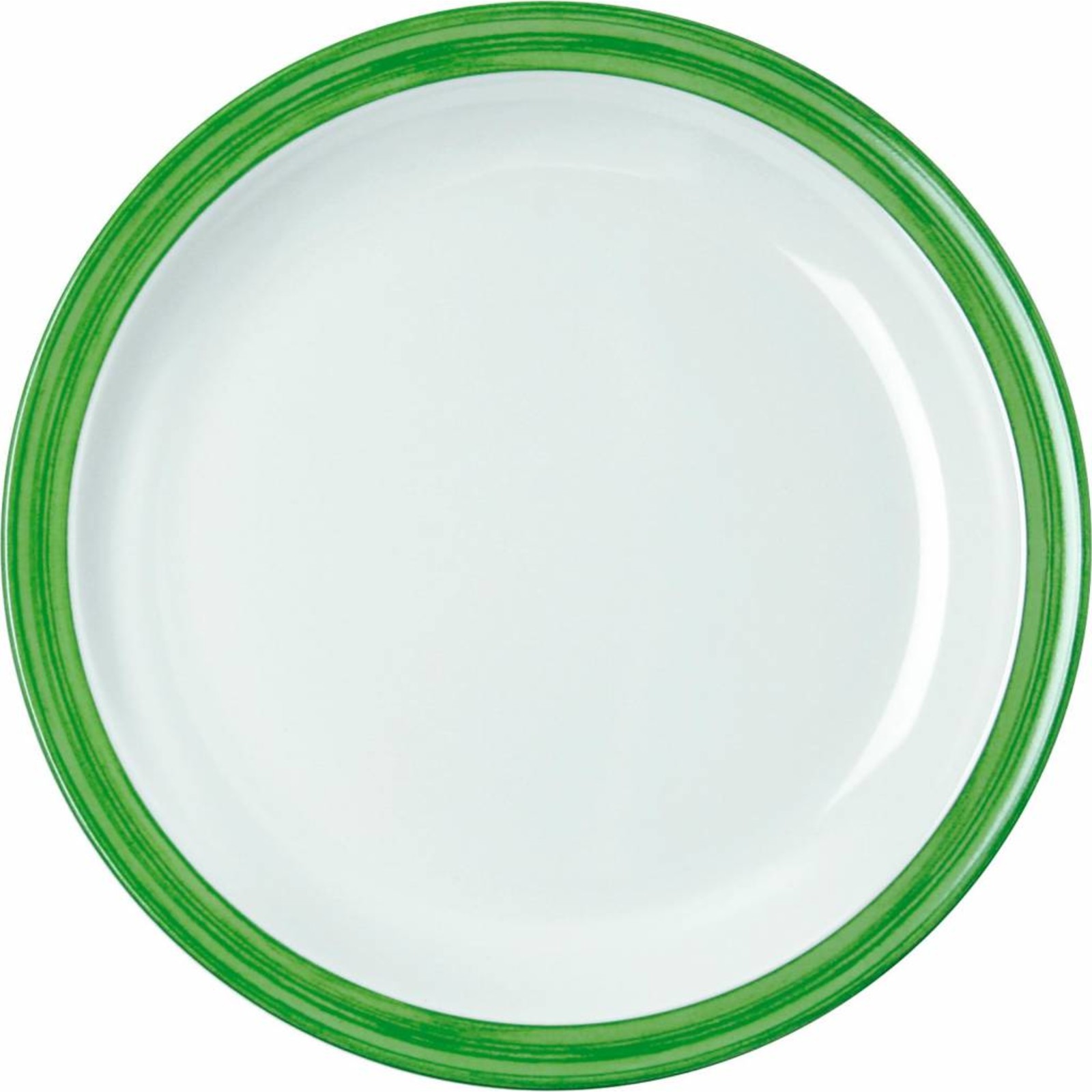 Teller Melamin. Stapelbar, bruchunempfindlich, leicht, oberflächenhart, geruchs-und geschmacksneutral, recyclebar, spülmaschinengeeignet, Wärmebeständigkeit 70°C, Kältebeständigkeit bis -50°C. Nicht mikrowellengeeignet.