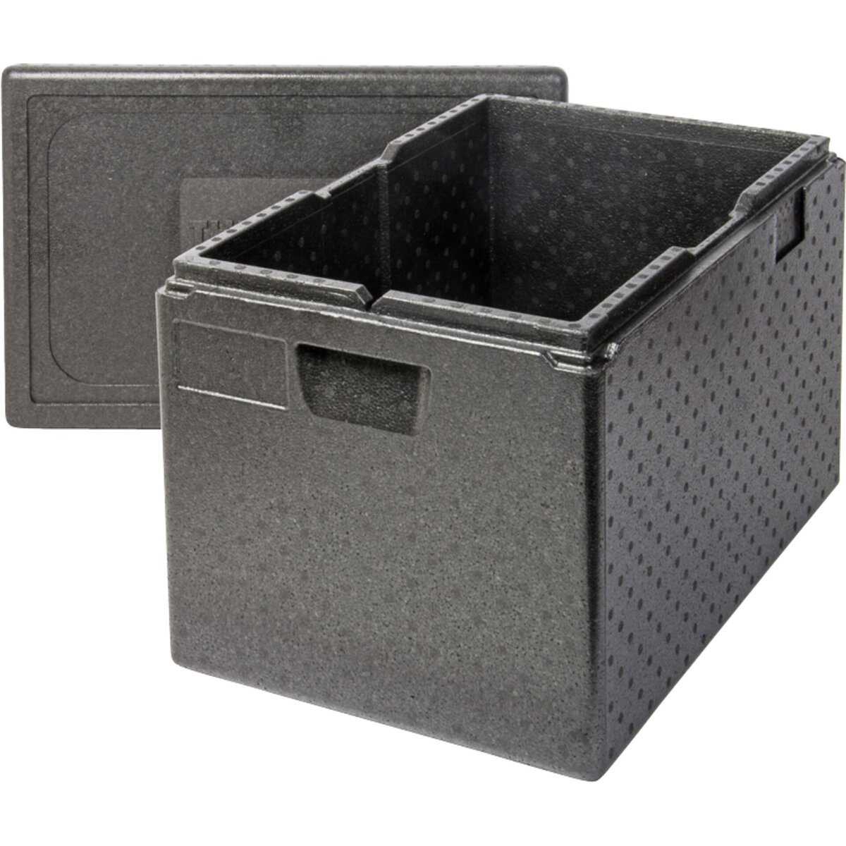 EPP, schwarz, bruchstabil, langlebig, leicht, hygienisch. Beste Isoliereigenschaften (-40°C bis +120°C), sicherer Lebensmittel-Transport heiß und kalt. Griffmulden erleichtern das Be- und Entladen. Für Stapelbehälter, Backbleche oder Tabletts. Festsitzender Deckel durch hohen Noppenstapelrand.